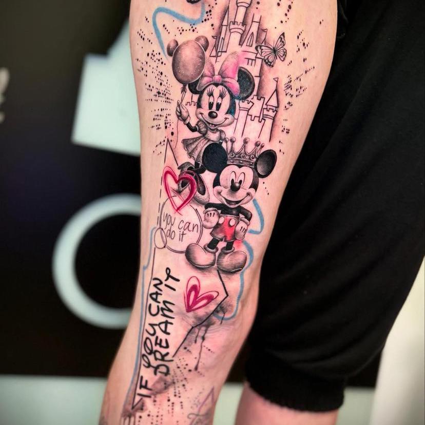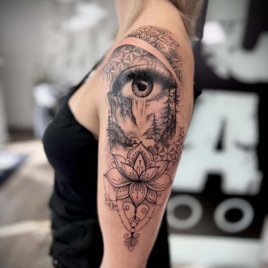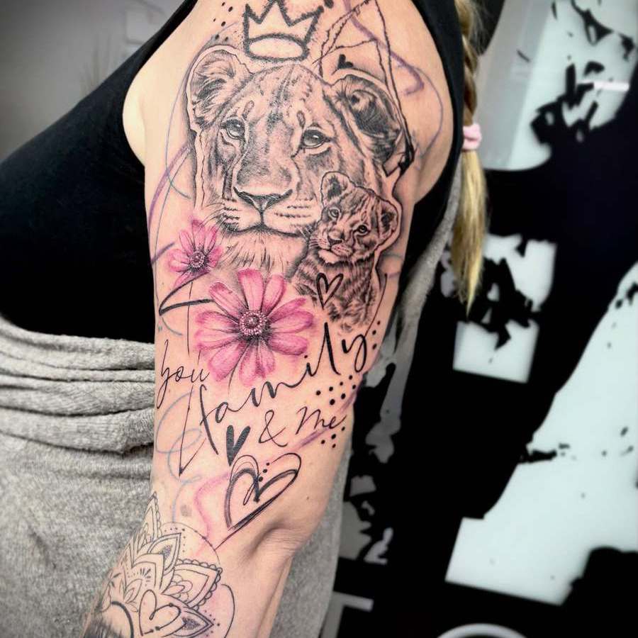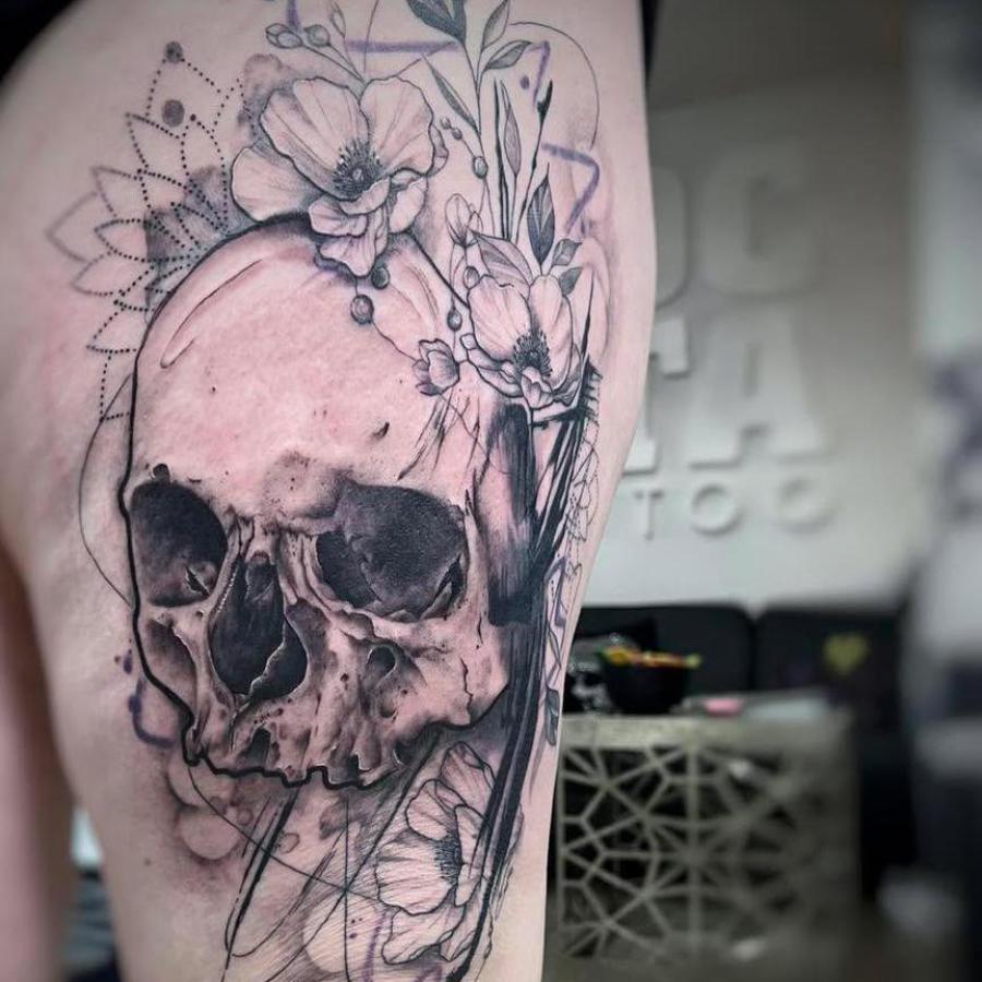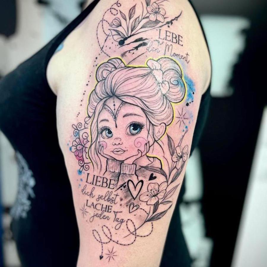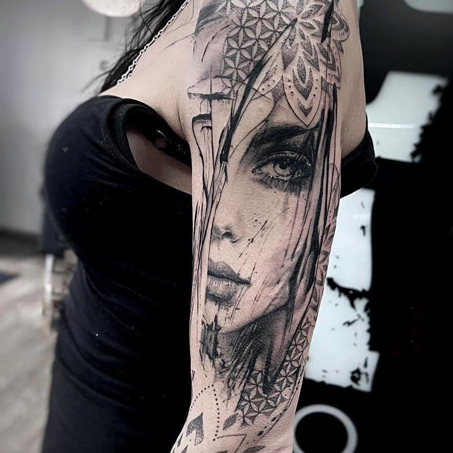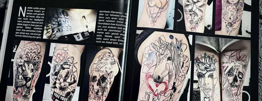 In meiner ganz eigenen Stilart "Dilladalla" kombiniere ich Fineline mit Ornamenten, grafischen und abstrakten Elementen und oft auch realistischen Motiven zu einer einzigartigen Collage. Hierbei setze ich die Grundideen meiner Kunden*innen mit viel Liebe zum Detail zu einem großen oder auch kleinem Ganzen zusammen.